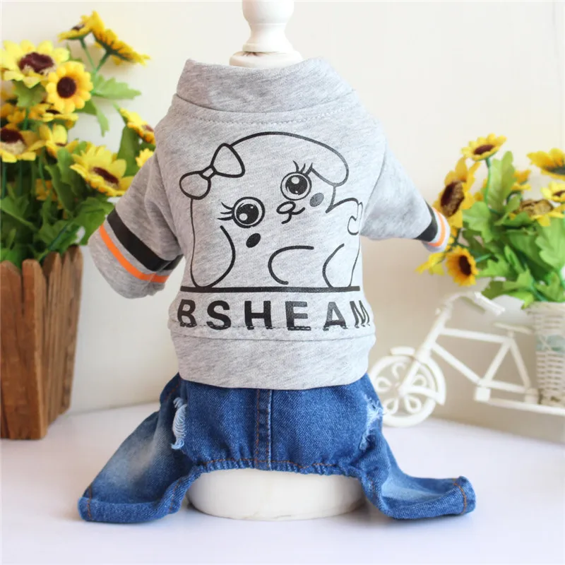 Good Chance for Dog Cat Denim Print Jumpsuit Hoodie Jean Pet Puppy Coat Jacket Spring/Summer Clothes Apparel 3 Colo